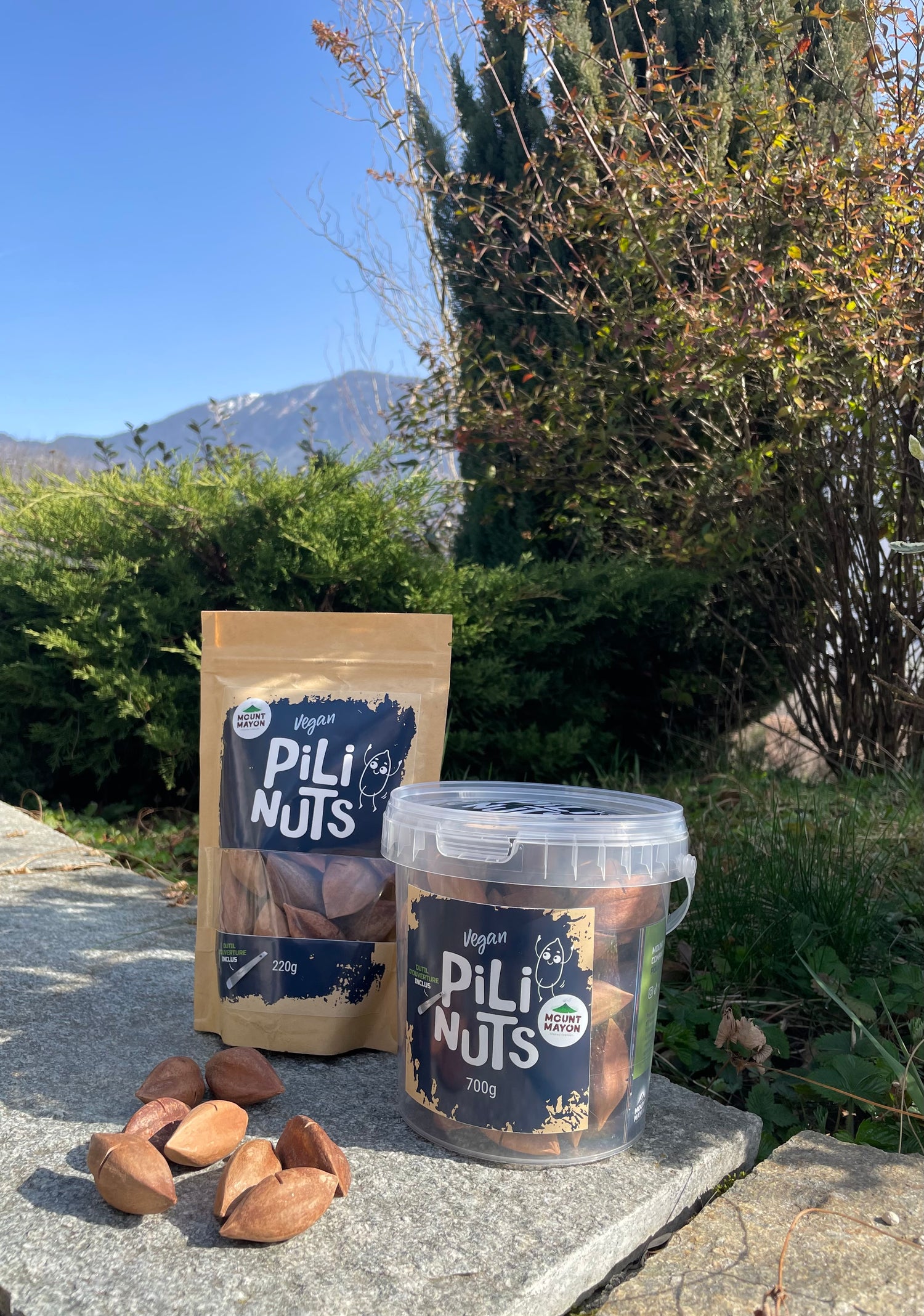 Because pili nuts mainly grow near a volcano called Mount Mayon which is located in the Philippines, hence “Mount Mayon” in English. Regarding “Trading” and “Company” it is to designate the professional aspect of our work.