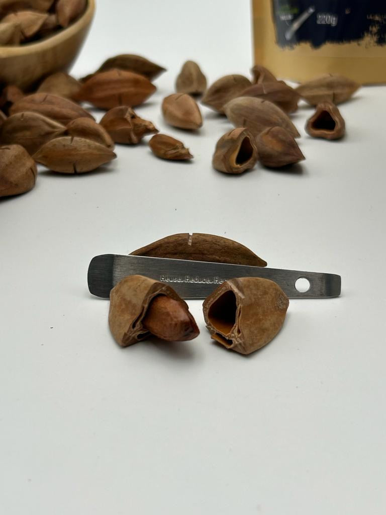Merci de proposer vos fameuses noix de pili à la vente en France. Cela fait plusieurs années que je n'en trouvais plus. Goût délicieux de beurre. Les ouvrir n'est pas toujours facile pour certaines avec seulement deux entailles. Serait-il possible d'en pratiquer trois sur la noix ? Encore merci. Je recommanderai certainement chez vous.